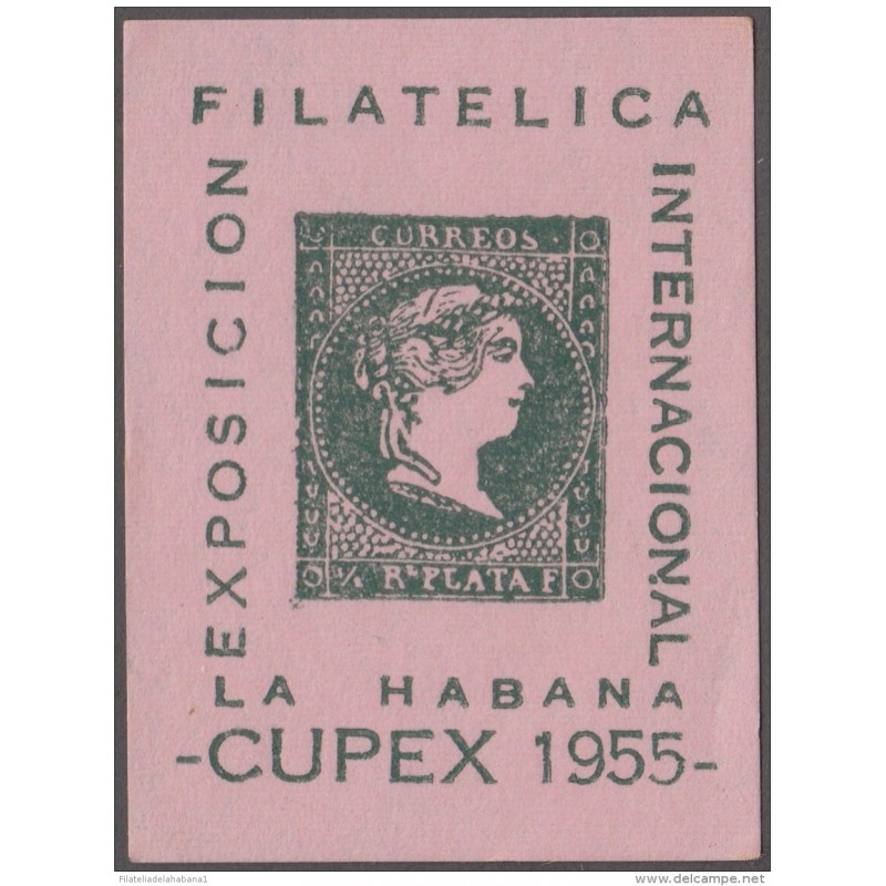 VI-110 CUBA REPUBLICA. CINDIRELLA. 1955 VIÑETA EXPO FILATELICA CUPEX. PHILATELIC EXPO. VERDE SOBRE PAPEL ROSA.