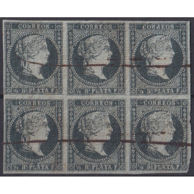 1855-308 CUBA SPAIN ANTILLES PUERTO RICO 1855 ½ r GREEN WHITE PAPER BLOCK 6.